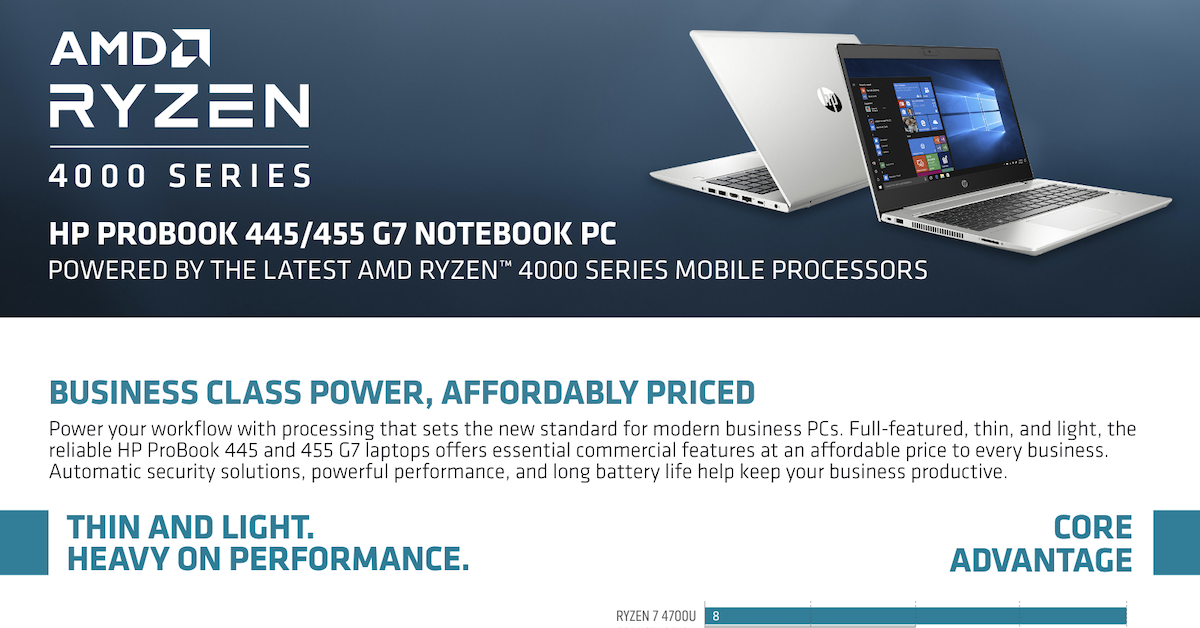 This data sheet provides in-depth information about the HP ProBook 445 G7 and HP ProBook 455 G7 powered by the latest AMD Ryzen™ 4000 Series mobile processors. Please contact Enterprise Technology International for more information about the HP ProBook 445 G7 and HP ProBook 455 G7 powered by the latest AMD Ryzen™ 4000 Series mobile processors.