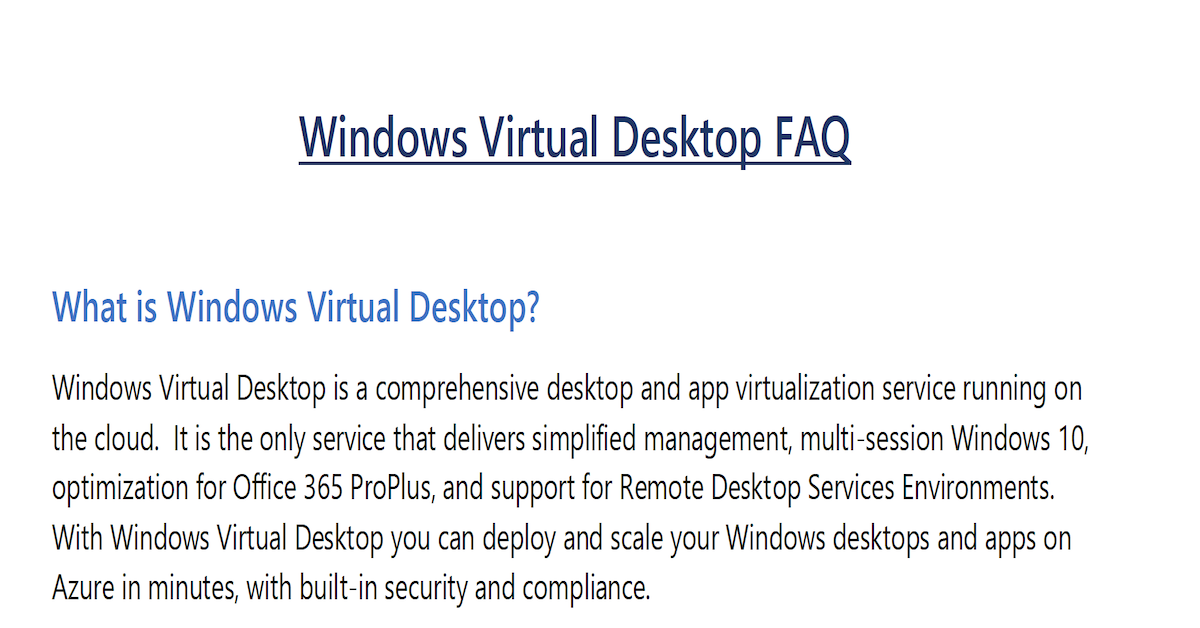 Windows Virtual Desktop helps organizations reduce costs, and quickly deploy and scale Windows desktops and applications. Read this FAQ to get familiar with the solution’s main features, as well as commonly asked questions about capabilities and implementation.
