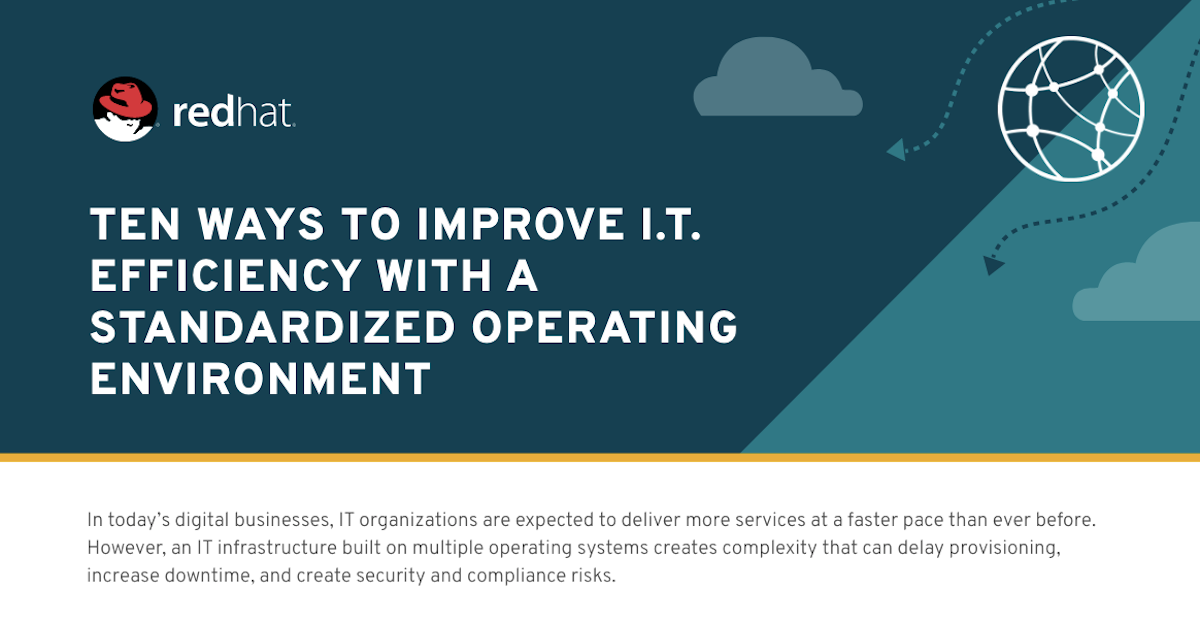 This solution brief from Red Hat offers ten steps to implement a standardized operating environment that can simplify IT infrastructure. Read it to learn how taking these steps helps improve efficiency, savings, uptime, IT productivity and security reliability — while accelerating deployment and provisioning.