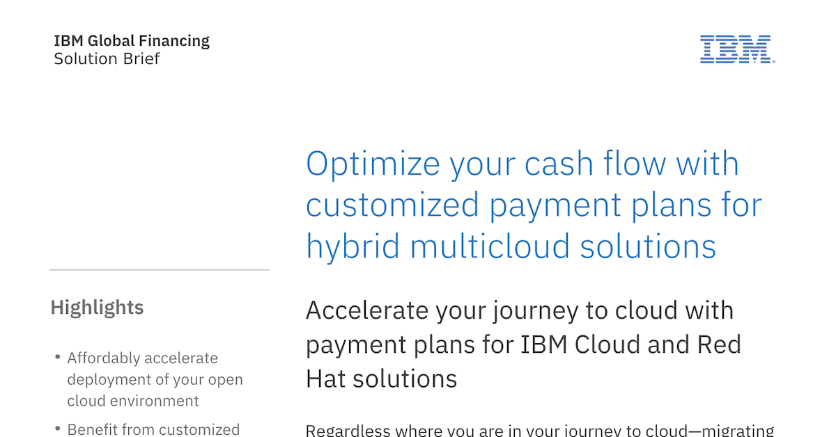 Whether you’re migrating existing apps, modernizing code or innovating new features, managing investments for maximum return is critical. Read this solution brief to learn how IBM Global Financing can help you accelerate deployment affordably.