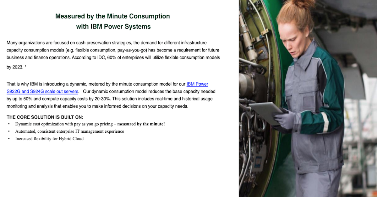 In today’s uncertain times, many organizations are tightening budgets to preserve cash. But with consumption-based IT offerings from IBM and Enterprise Technology International, you don’t have to delay your march toward the cloud. Read this solution brief to learn how our consumption-based offering from IBM allows you to continue to take advantage of the cloud’s agility in a more cost-efficient way by only paying for what you use.