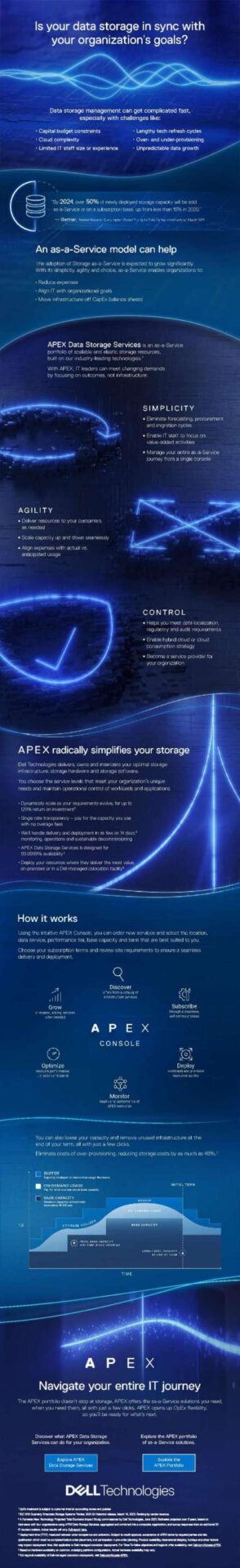 With challenges like budget constraints, cloud complexity and lengthy tech refresh cycles, data storage management can get complicated fast. Check out this infographic to see how an as-a-service model can reduce expenses, create simplicity and deliver resources as needed.