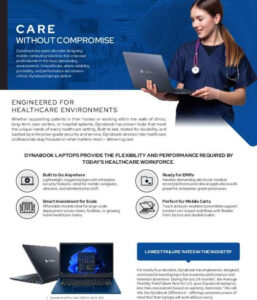 Read More@Dynabook Americas delivers reliable performance and portability everywhere healthcare workers need to be. Check out this brief for more details and message us to discuss how to make a smart IT investment for modern care delivery.